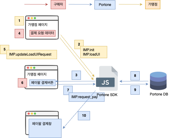 // 7. 이떄 포트원은 내부적으로 IMP.request_pay 함수를 고객사 대신 호출하며
